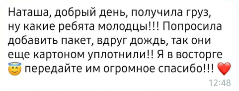 Не учитывается стоимость упаковки и разгрузки на южных воротах